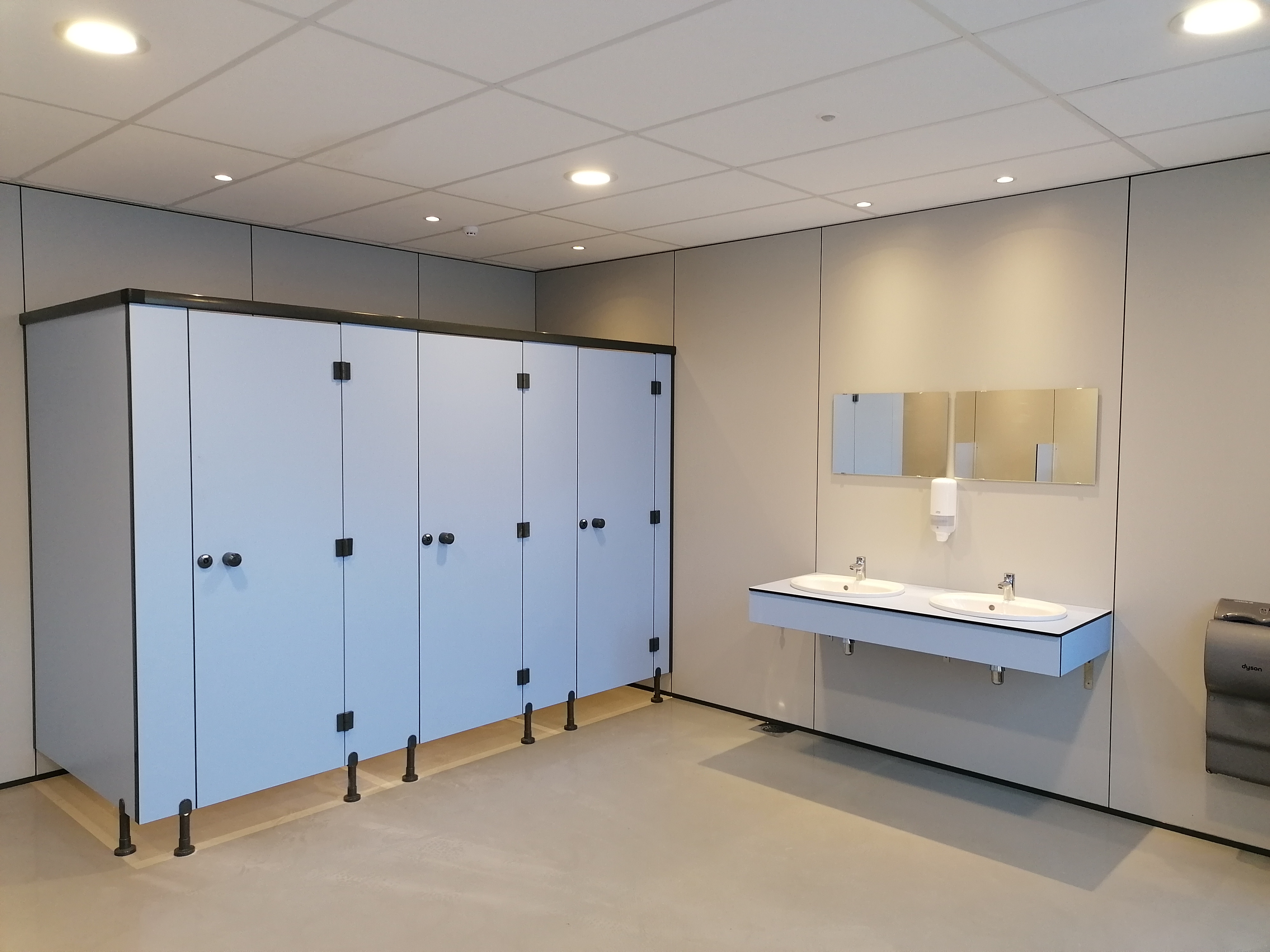 Plaatsing van cabines, schaamschotten en wastafeltablet!